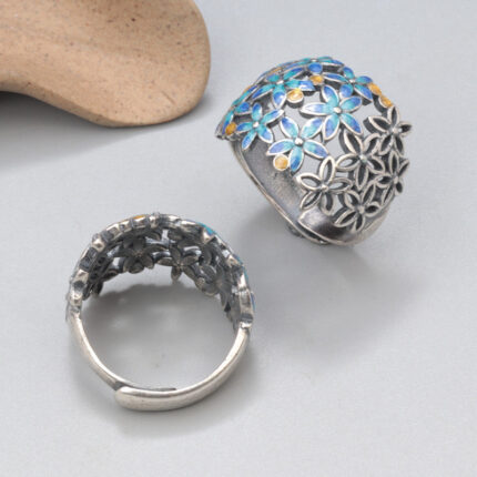 Sterling silver flower hollowed out ring