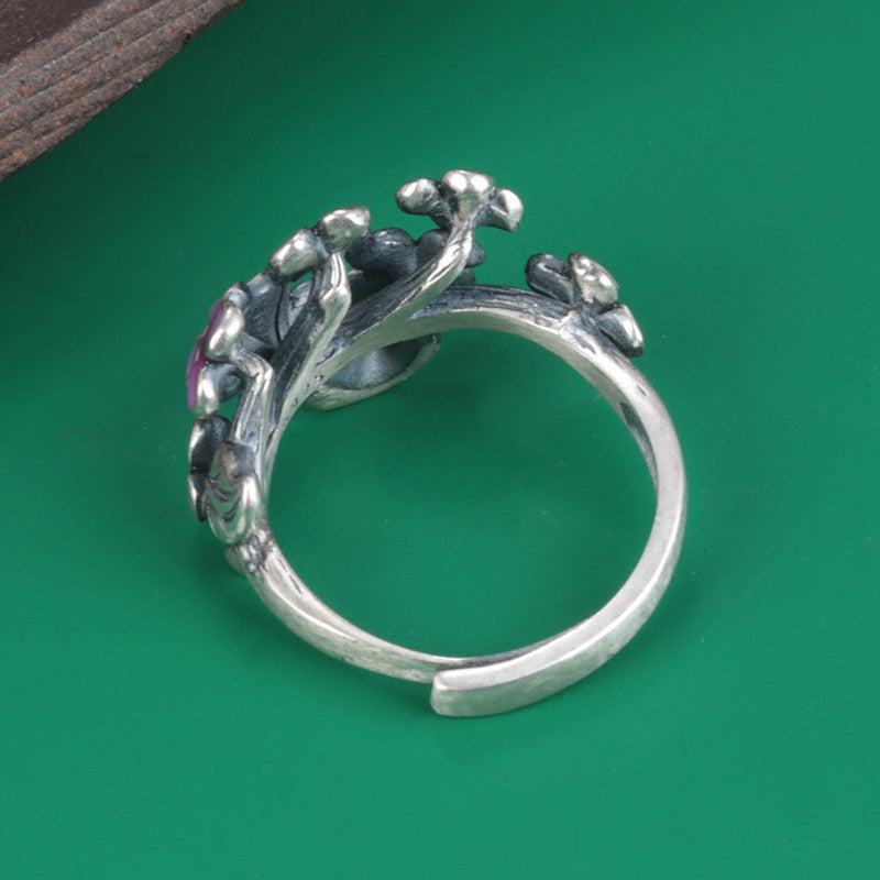 Vintage Thai Silver Wrap Ring Coral Garnet Amethyst Emerald Ring