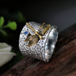 925 Thai silver gold dragonfly diamond ring