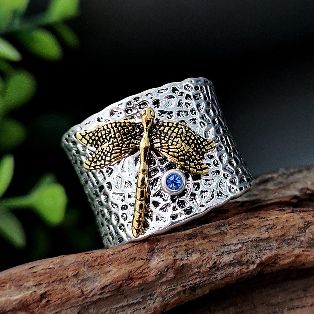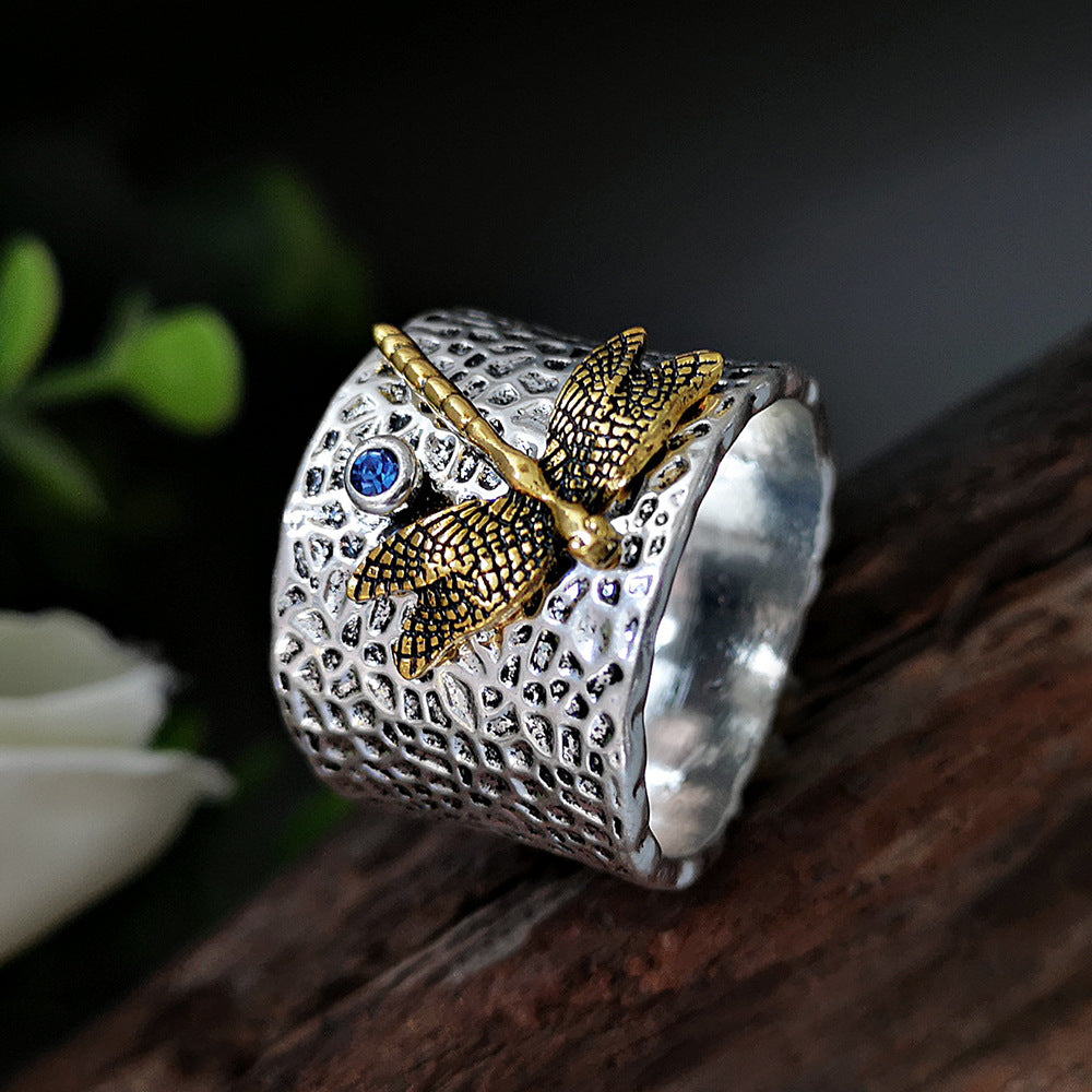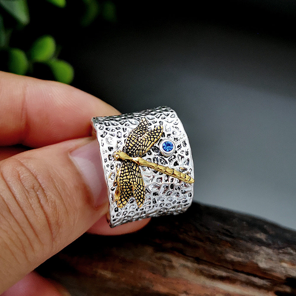 Home Hot Sale 925 Thai silver gold dragonfly diamond ring