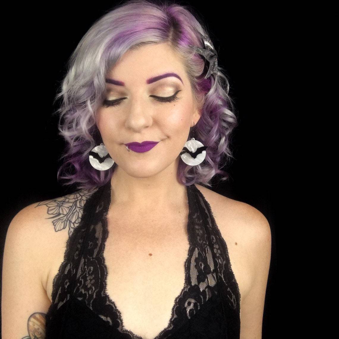 Bat earrings above the moon