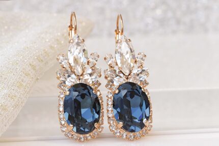 BLUE NAVY EARRINGS And Necklace Set, Crystal Earrings, Bridal Navy Blue Jewelry Set, Montana Blue Topaz, Cocktail Earrings, Wedding Gift