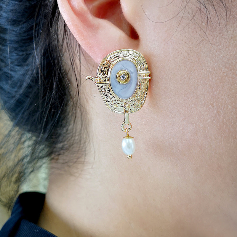 Home Hot Sale Creative gold enamel and diamond earrings