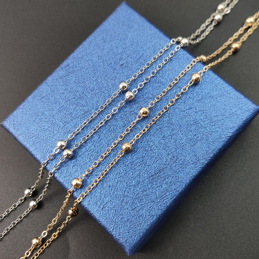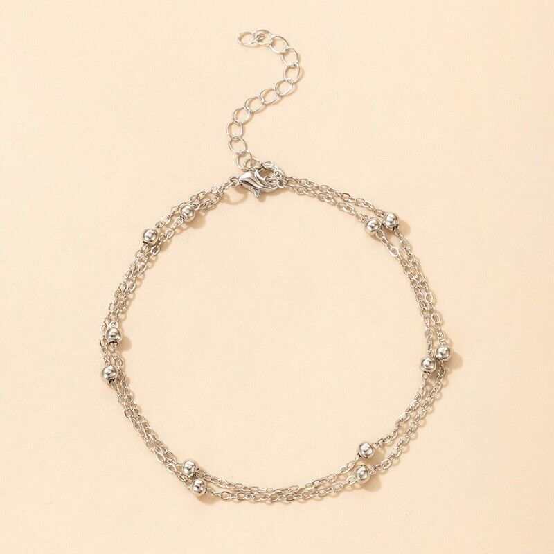 Experience the allure of dual elegance with our Double Layer Silver Anklet from Lost Lover. This silver anklet features two delicate layers with beading details, creating a harmonious dance around your ankle, perfect for expressing the spirit of boho chic.