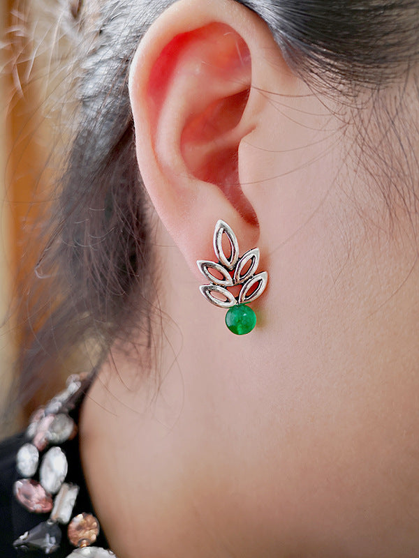 Home Hot Sale Fashion emerald chalcedony Leaf Earrings