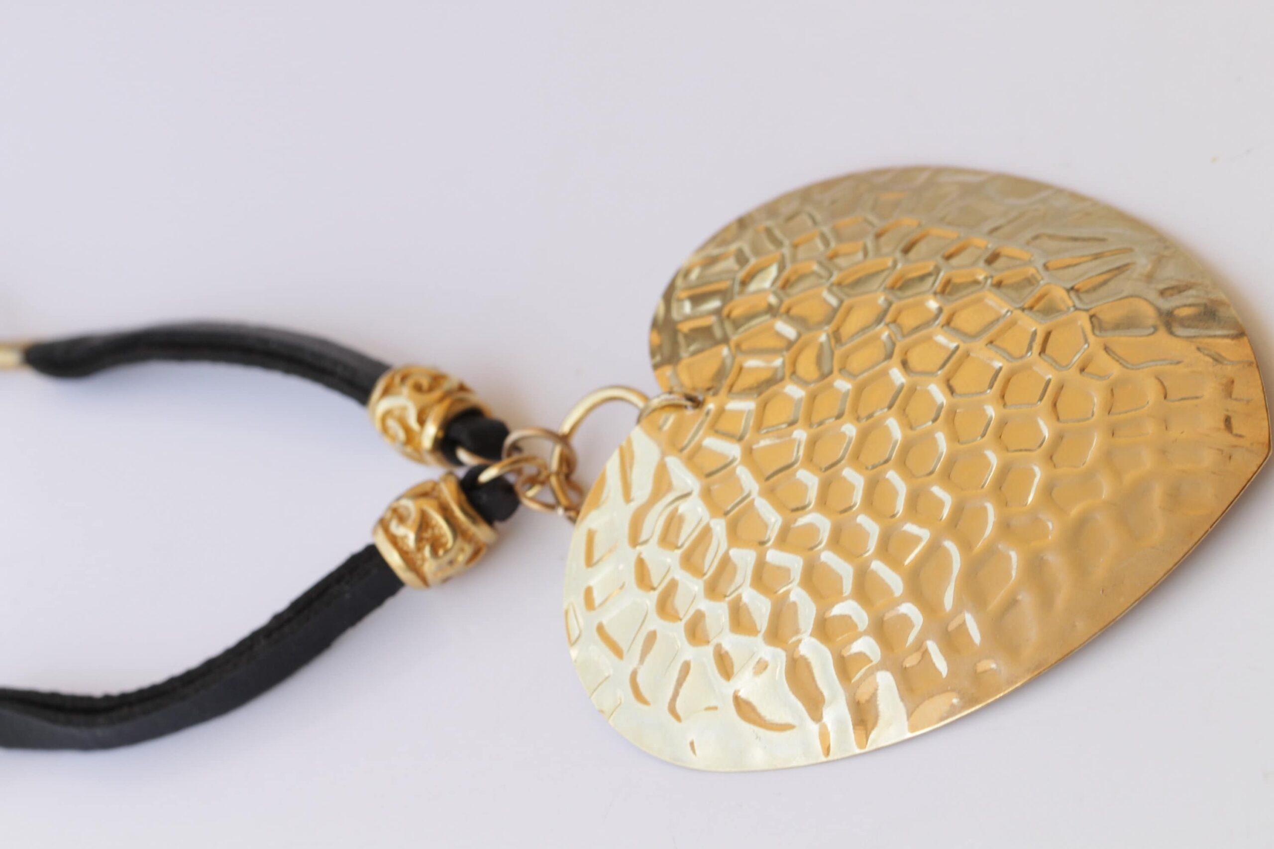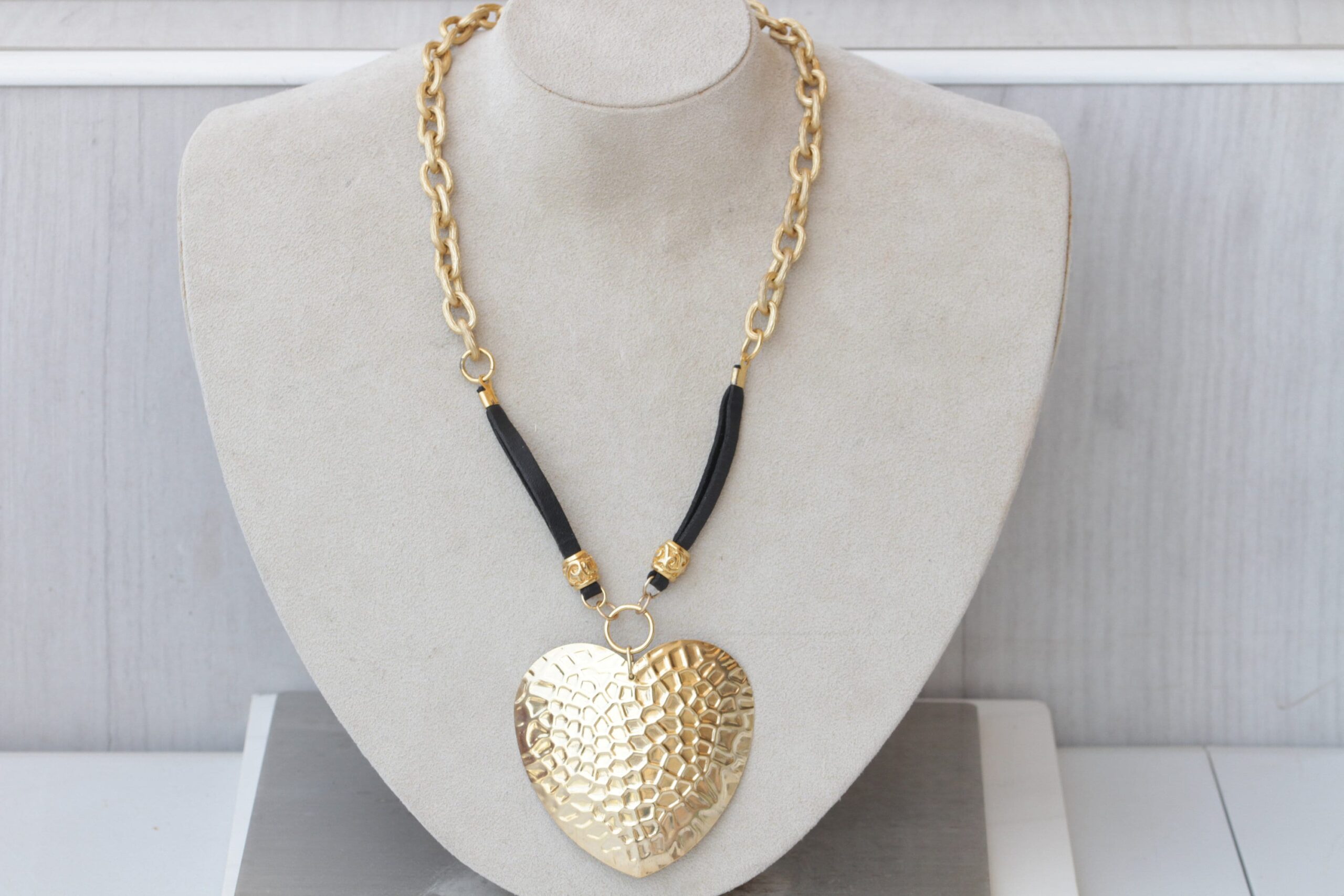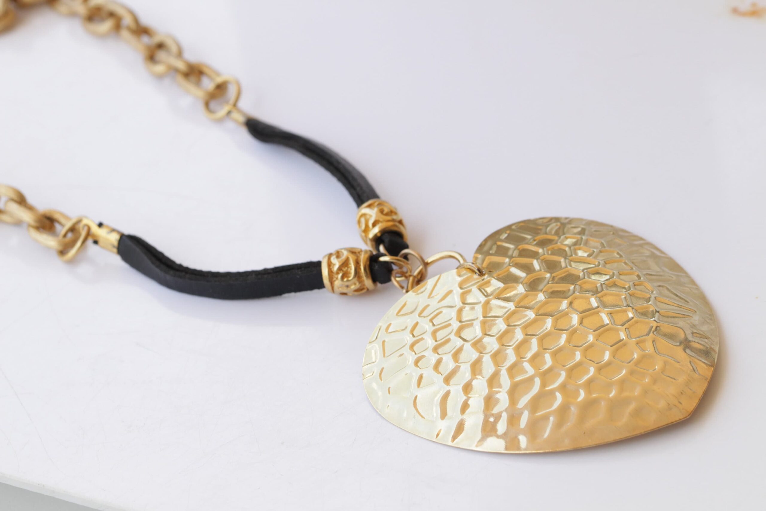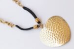 Leather Heart Necklace, Big Heart pendant, Boho leather necklace, Black Gold Necklace, Large necklace, Long Ethnic Chunky Necklace Gift