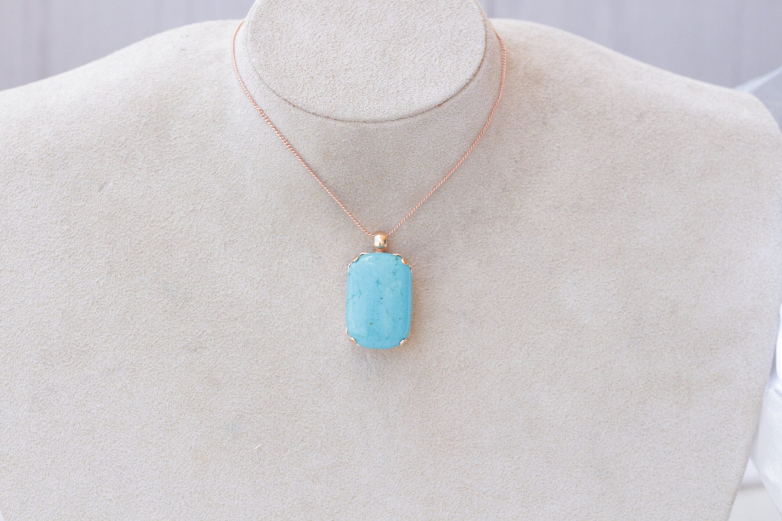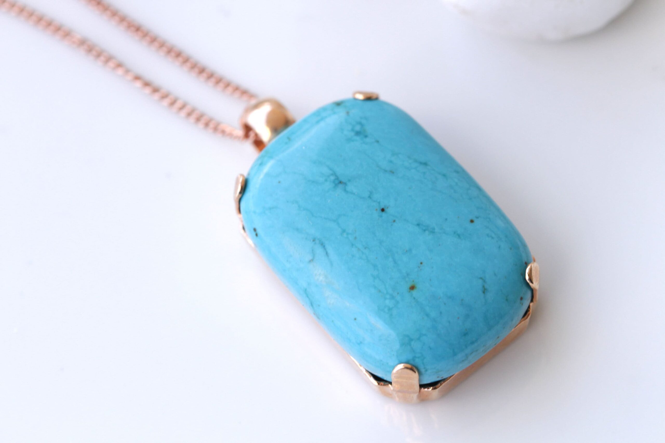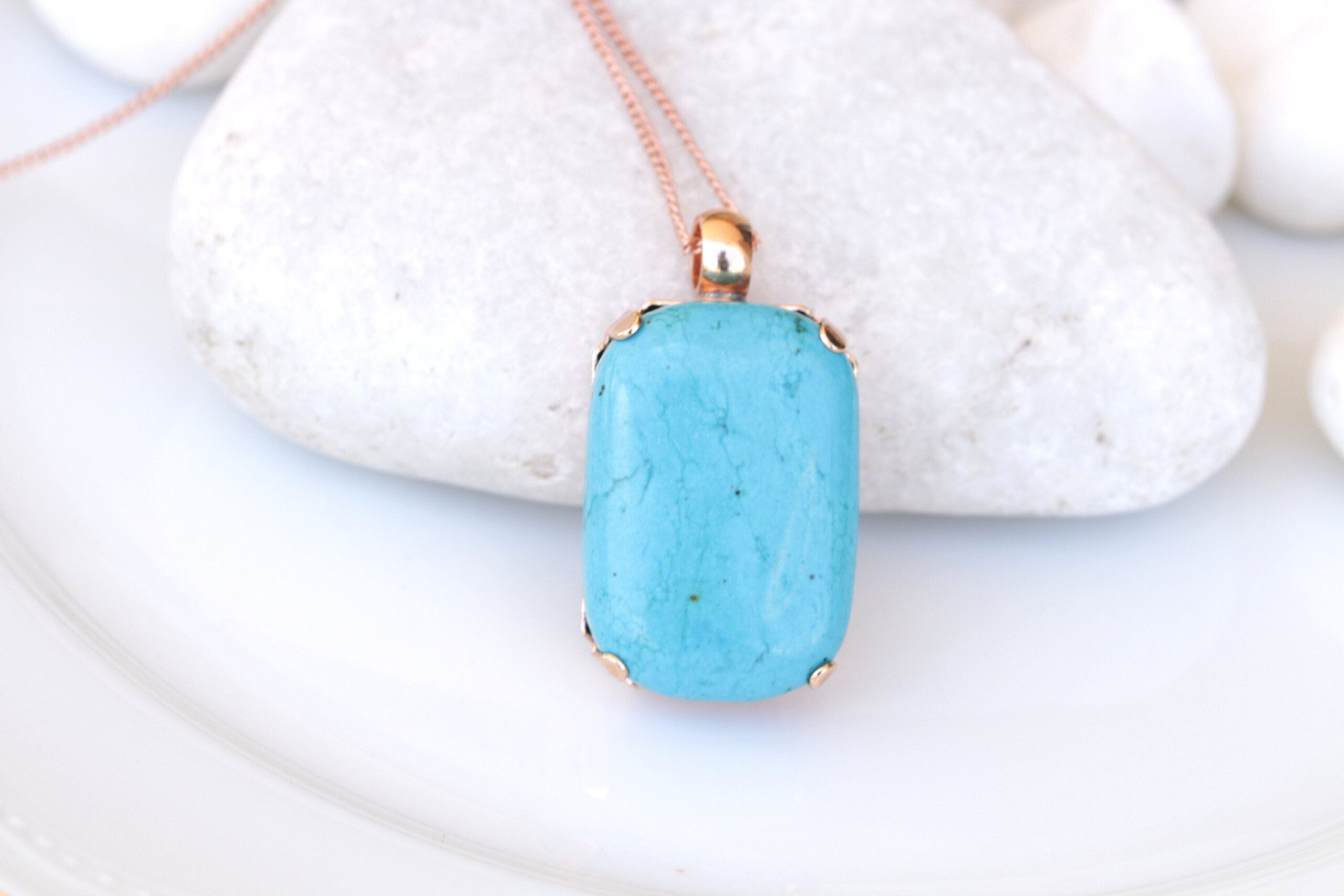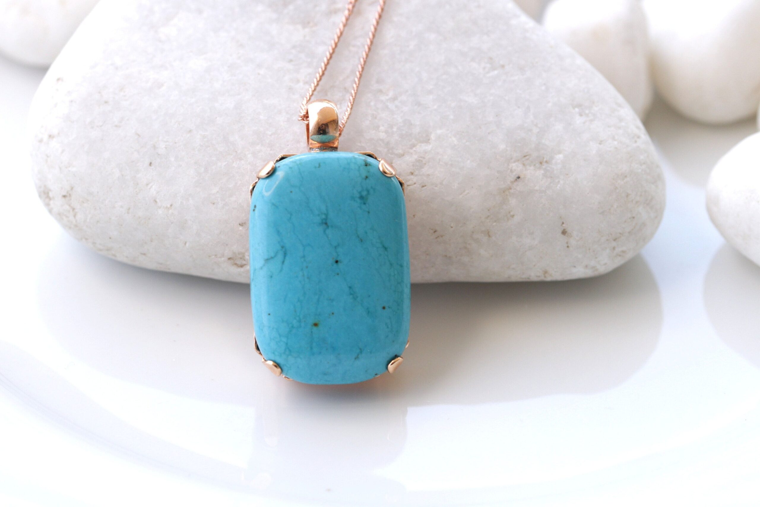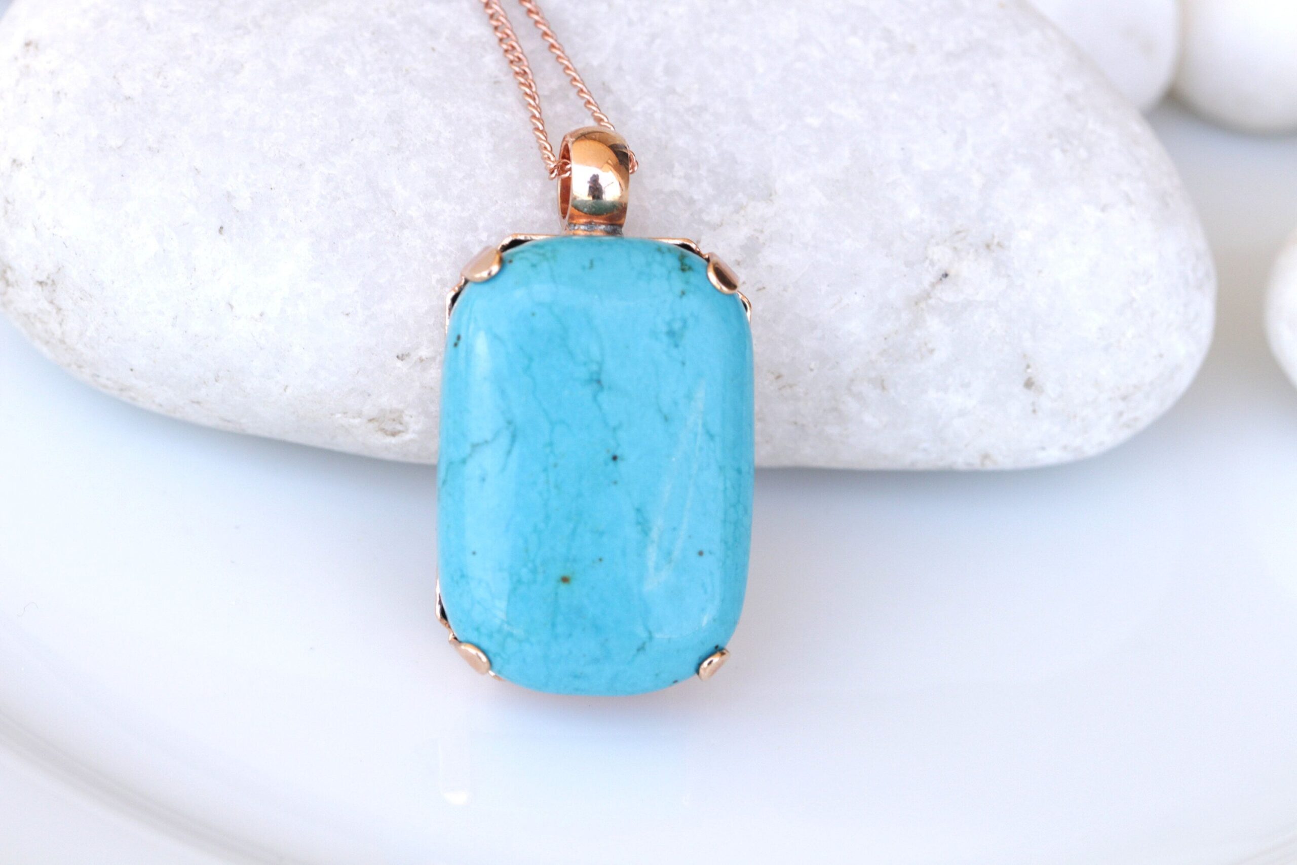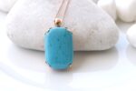 TURQUOISE NECKLACE, Turquoise Classic Pendant, Anniversary gift ,Blue Turquoise And Rose Gold Large Pendant, Simple Gemstone Necklace Gift